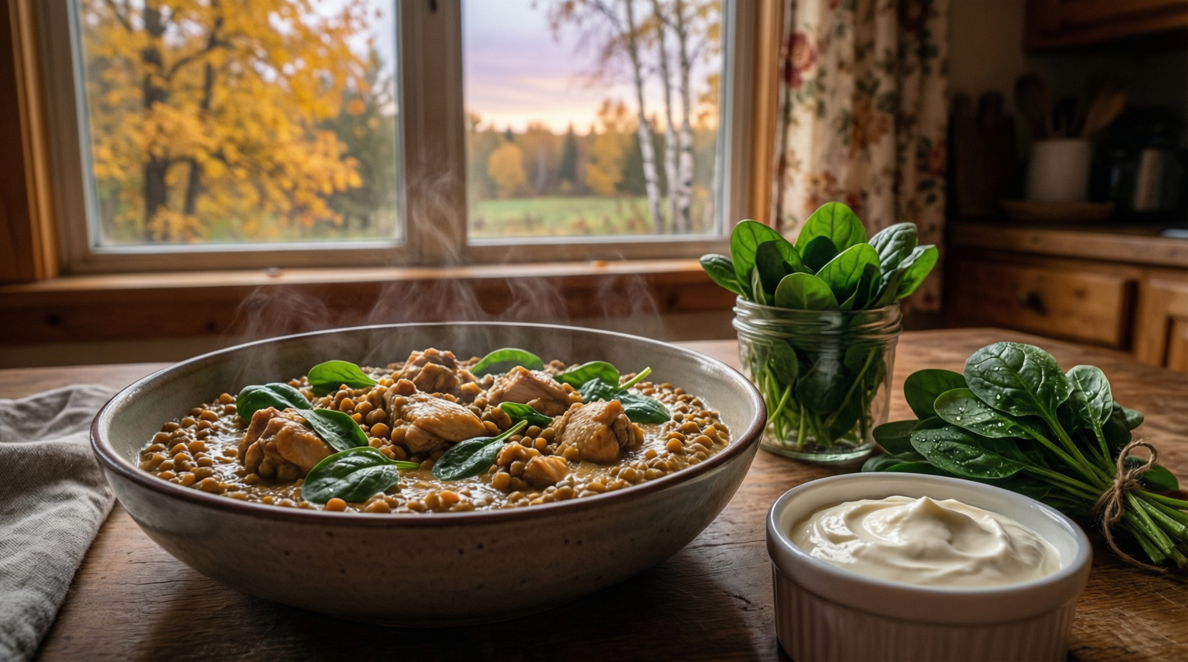 Почему в тренде: Чечевица — король клетчатки + растительного белка, курица добавляет животный протеин. Идеально для «fibermaxxing» без тяжести. Примерные цифры на порцию: ~35 г белка, ~12–15 г клетчатки. Рецепт (4 порции, 40 мин):